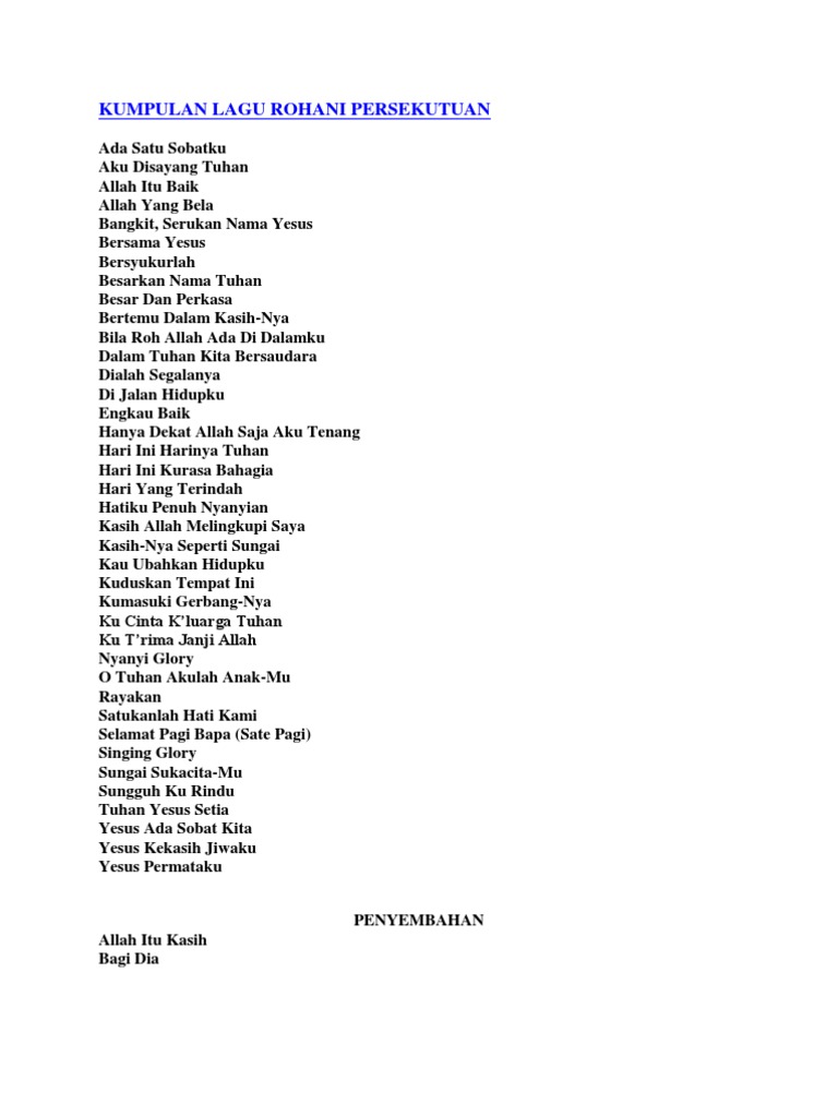 Nah, selain saat melaksanakan acara tertentu umat masehi juga sanggup mendengarkan tunggal lagu-lagu rohani supaya meraih kedamaian. Sebenarnya jenis lagu-lagu seperti itu sangat banyak dan sanggup didapatkan beserta mudah dalam situs online atau pada internet. Nah, bagi Dikau yang ingin mendengarkan lagi-lagu rohani buru-buru download lagunya.